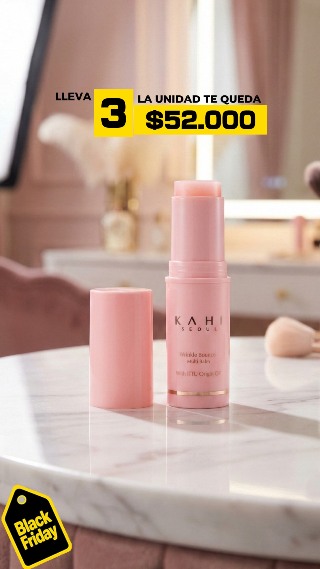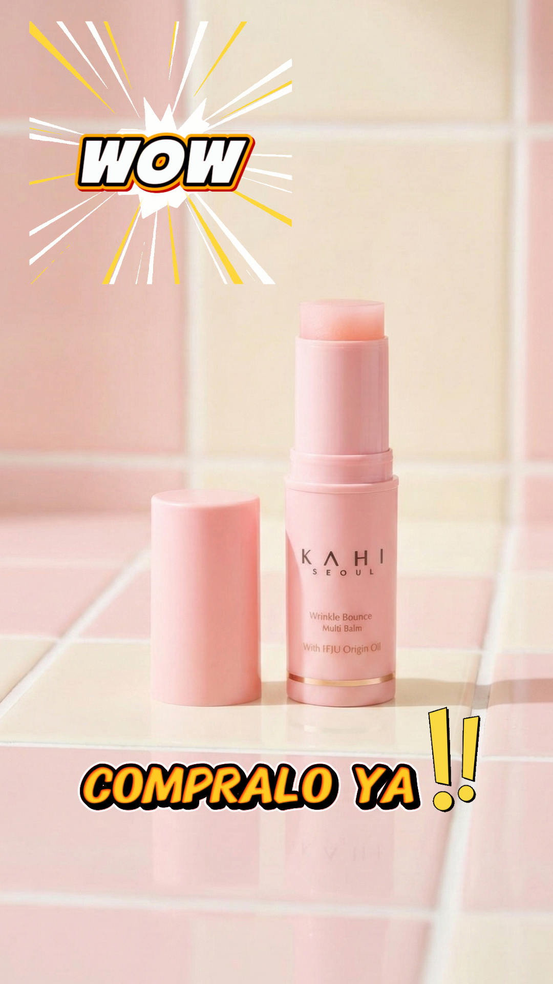 El KAHI Wrinkle Bounce Multi Balmes el icónico bálsamo coreano que se convirtió en tendencia mundial por su capacidad Rehidratar, suavizar líneas de expresión y dar un brillo saludable inmediato. Su fórmula con Jeju Origin Oil, colágeno y adenosina ayuda a mejorar la elasticidad de la piel y a crear una barrera protectora para mantener la hidratación por más tiempo.